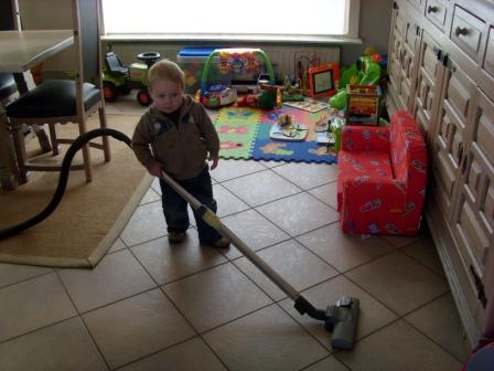 Fries lijkt op zijn opa’s, het ventje is redelijk kaal aan het worden. Daar gaan die mooie bruine haren… Enkel een randje aan de zijkanten en de achterkant bewijst hoe mooi bruin zijn goddelijke lokken waren bij de geboorte. Bij zijn eigen feest zal Friesje er dus uitzien als een gerimpeld oud mannetje. En nu is het afwachten wat er terugkomt: blonde haren of bruine haren. Favoriet: bruine haren met die mooie blauwe ogen van hem. We hebben tenslotte al een blond geval dat zich dartel een weg door het leven baant en dit op alle mogelijke manieren: omhoog (kruipt al zelf in zijn eetstoel), omlaag (vallen, zucht), vooruit, achteruit, zijwaarts (met de benenwagen, met de fiets, al kruipend of al sluipend). Grote broer Benne heeft energie voor tien, wil tegenwoordig pas om negen uur ’s avonds vertrekken naar dromenland, en geen enkele kabouter (Plop, Kwebbel, Klus, de hele santenboetiek) die daar iets zal kunnen aan veranderen. Om zijn energie wat te minderen laten we hem kuisen, de ramen lappen, de vloer stofzuigen en daarna schuren, de muren schilderen. Enfin, alles wat onder de noemer kinderarbeid valt laten we hem doen. Maar hij is eerst begonnen!