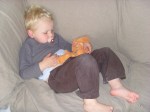 Soms valt hij wel eens uit zijn bed. Als we geluk hebben merkt hij er zelf niets van.