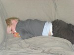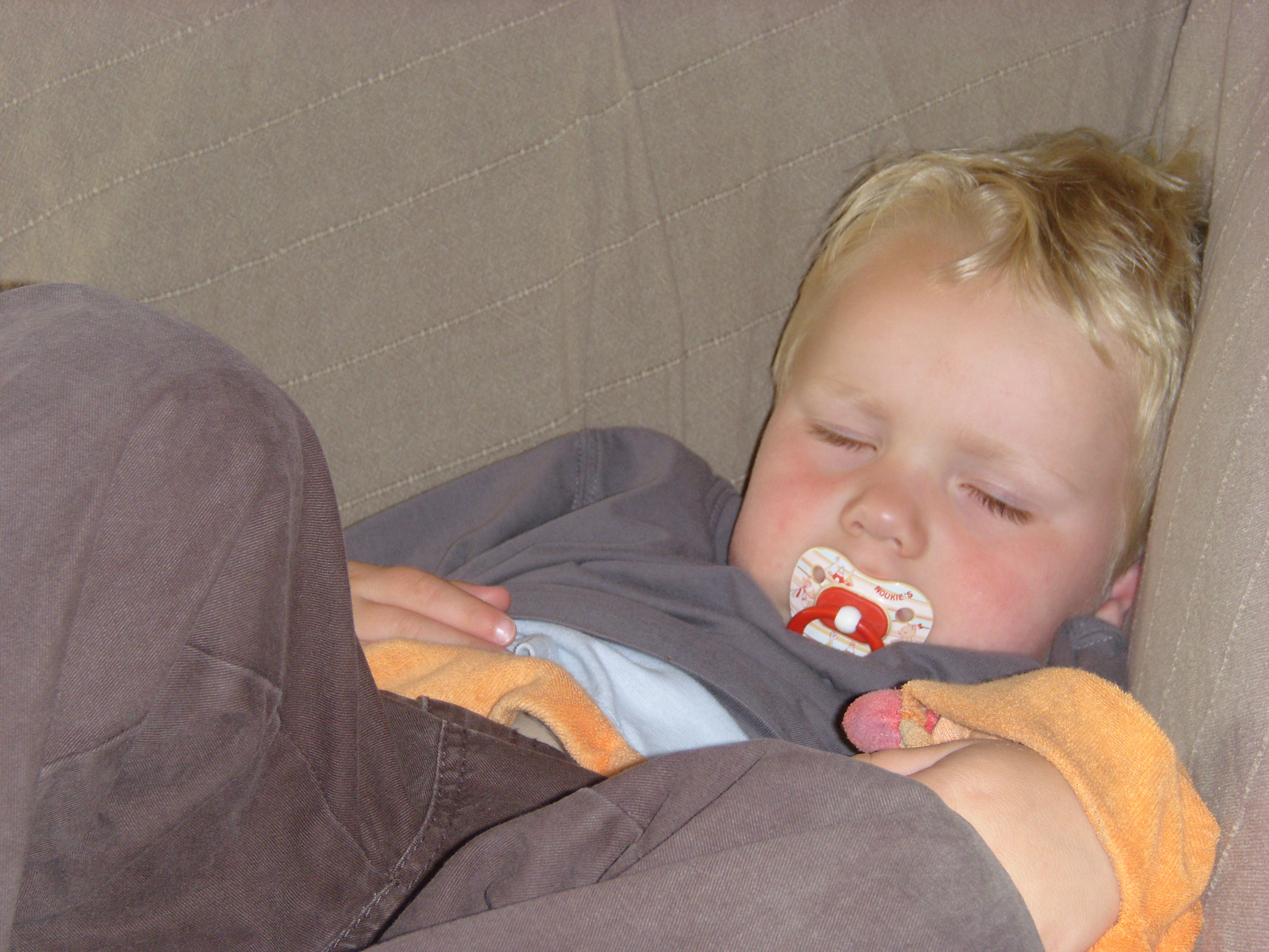 Ik had ze echt tegen de muur willen plakken, die twee. Maar net toen ik begon te bedenken hoe ik dat het beste kon doen (lijm, een haakje, een kast ervoor? :-)) begonnen ze met z’n tweeën aan een mooi knorconcert in stereo. Benne kriebelde met zijn handjes aan mijn arm, Fries wreef met zijn tenen aan mijn rug. En ja, ik was content. Zolang ze muisstil op dat bed lagen. Na een half uur begon het hele liedje opnieuw en werden mijn muur-behangplannen weer wat concreter.