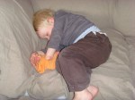 Oorzaak/oorzaken: matrassen die plots heel wat slechter zijn geworden? Baneegij: wriemelende en wrikkelende half spastische zonen die we, eens ze wakker zijn en beginnen te wenen, vlug bij ons in bed nemen omdat onze nachtrust ons ook wel nog een beetje lief is (sorry mr. pedagoog). Zoon 1 heeft er een handje van weg om ten eerste: dwars op het bed te liggen tussen zijn ouders in, ten tweede: te stampen op alle ingewanden die zich in het lijf van zijn ouders bevinden en ten derde: om zijn beren onder je rug te leggen waardoor je de helft van de tijd wakker schiet met een halve bobbel (=berenhoofd) onder je zij, rug, buik, nek, … Zoon 2 doet niets liever dan een voorafgaande plaatsbepaling voor hij zich op het slaapavontuur (deel II: het grote bed van mama en papa) stort. Op elk plekje van de matrassen zit, staat of ligt hij, over elk plekje van zijn ouders kruipt, springt of gaat hij. Tot meneer zijn plaats gevonden heeft. Voor een half uur.