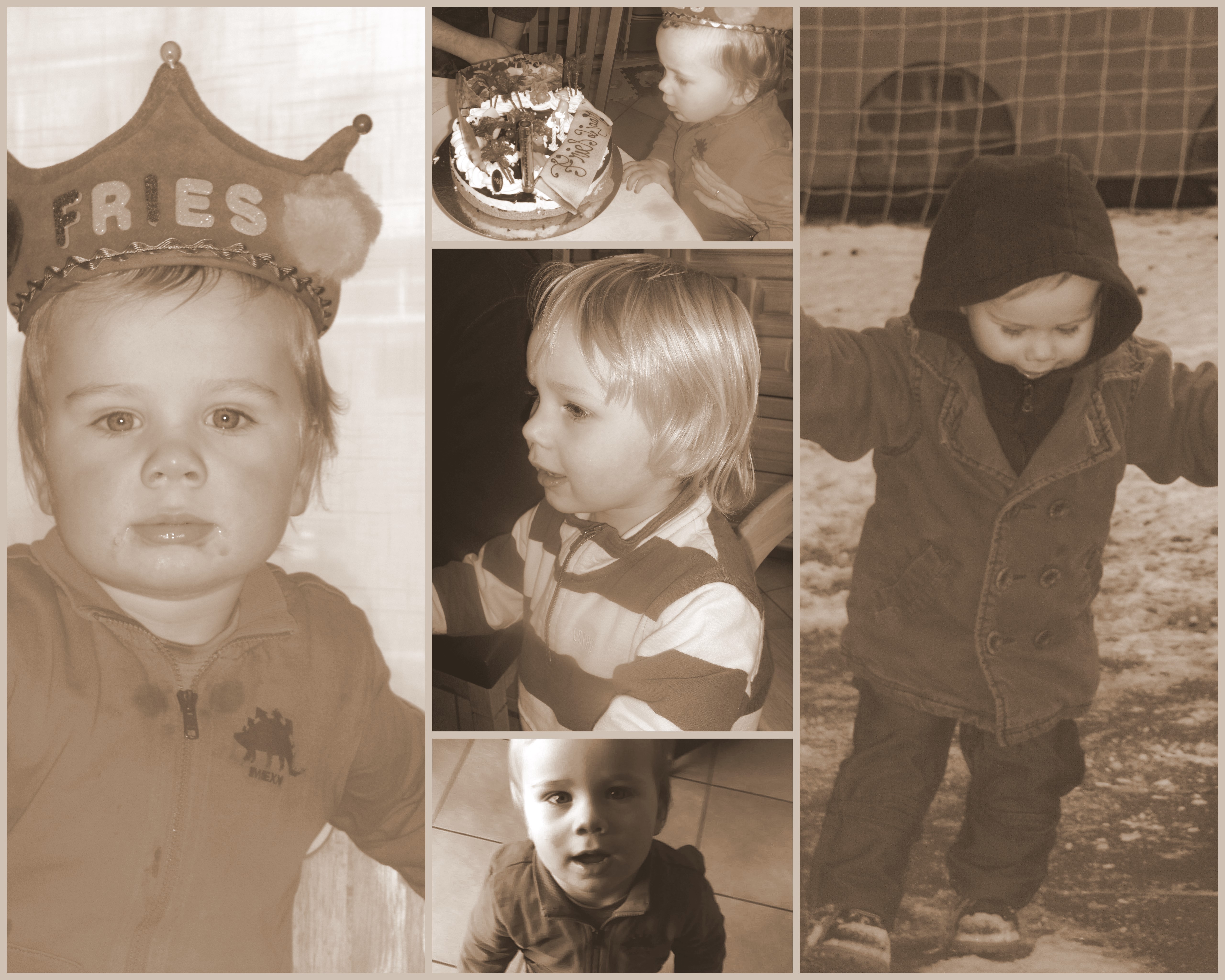 De dag voor zijn verjaardag was het nog dat mama en papa stout waren en dat ze niet naar zijn feest zouden mogen komen. Waarop moeder begon te mompelen dat ze hem heel graag een kartonnen taart zou voorschotelen. De dag van zijn verjaardag was hij de man. Hij wist het, en hij gedroeg er zich naar. Als liep de nulmeridiaan door eender welk deel van zijn lijf, als was er niemand ter wereld die nu niet aan het meevieren was. Tenslotte was hij nu wel degelijk baby af, zo had hij zelf plechtig meegedeeld. En wij mochten vereerd zijn dat hij dat met ons wilde vieren, daar bestond ook geen twijfel over.